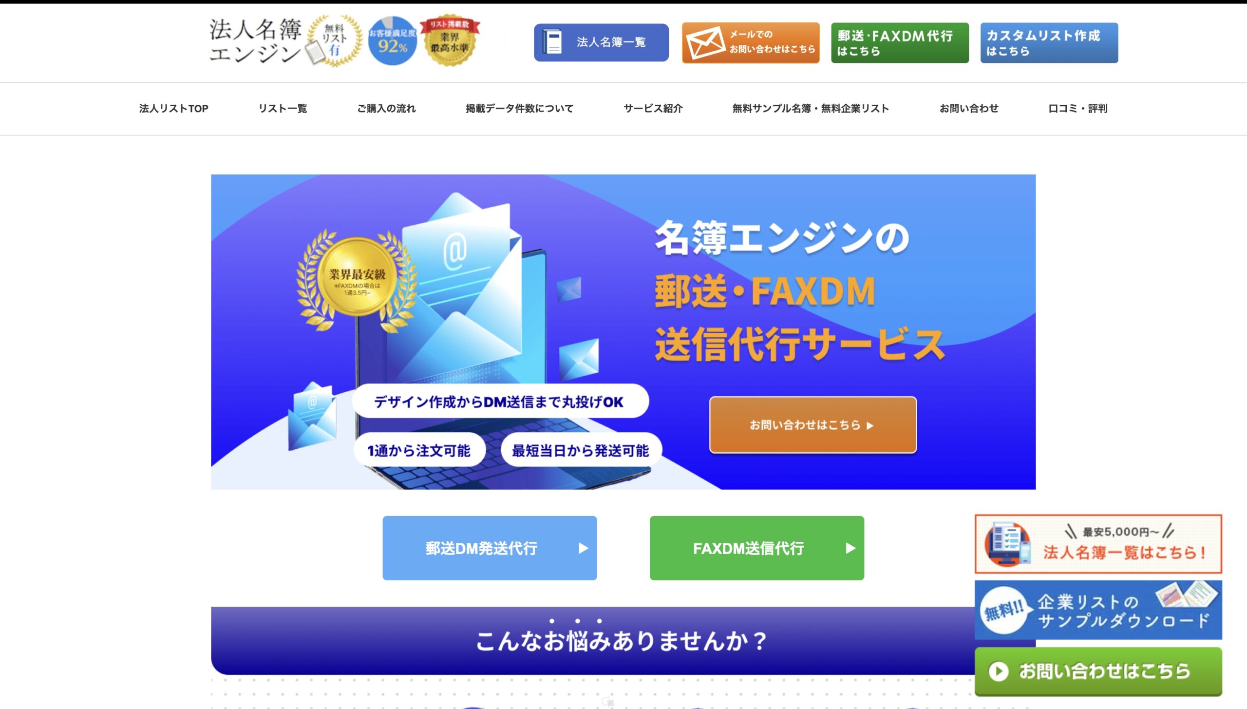 こちらでも最少ロット1通〜のDM発送代行サービスをおこなっています。元々、リスト販売サービスのため、リスト販売に強みを持つサービスです。