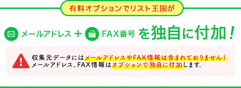 リスト王国ならメールアドレスとFAX番号のオプションで追加OK